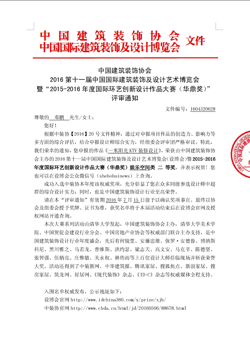 恭喜我公司鄧鵬設計師作品《一米陽光KTV》獲得2016年華鼎獎